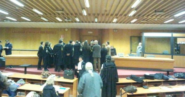 Il processo ai No Tav proseguirà nell’aula bunker delle Vallette. È quanto ha deciso ieri la corte presieduta dal giudice Quinto Bosio. Al Palagiustizia non c’è posto per la concomitanza dei processi Thyssenkrupp ed Eternit, da qui la scelta di utilizzare la maxiaula dove si sono celebrati importanti processi di mafia e terrorismo costruita accanto al carcere torinese. C’è il dubbio che la scelta dei giudici sia stata influenzata dalla gazzarra inscenata da imputati e pubblico il 23 novembre scorso quando il presidente si trovò in un’aula troppo piccola per ospitare la folla di imputati, avvocati, giornalisti, parenti e amici. Allora, scattò una protesta con slogan, cori e uno striscione che chiedeva la libertà per i “compagni” ancora agli arresti, cogliendo impreparate anche le forze dell’ordine. (nella foto, gli avvocati trattano con la corte lo spostamento del processo)