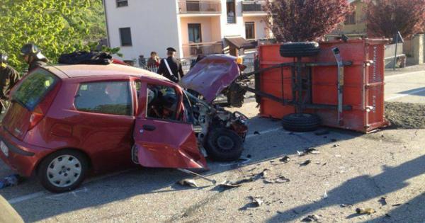 Grande spavento, un’utilitaria con la parte anteriore distrutta ma per fortuna soltanto un ferito lieve nell’incidente avvenuto mercoledì mattina alle 7,40 lungo la statale 25, nel tratto in discesa che porta verso la frazione San Giuliano. Protagonisti dello scontro una Fiat Punto di colore rosso amaranto e un trattore con il rimorchio. Per cause ancora in fase di accertamento, il mezzo agricolo è stato tamponato dalla vettura: nell’impatto, piuttosto violento, ha perso per strada i sacchi di sabbia che stava trasportando.