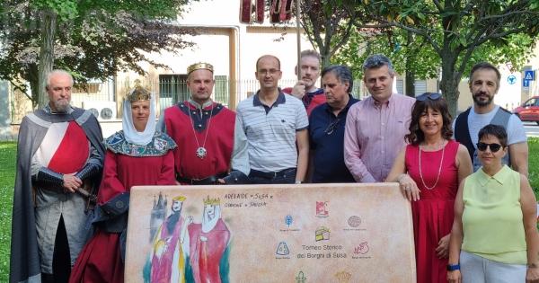 Una panchina, poi un galà serale. È iniziata così l’avventura estiva di Adelaide e Oddone. Marchesa e Conte, impersonati da Lauretta Favro e Davide Pelissero, in rappresentanza del Borgo di Traduerivi, hanno vissuto una lunga e calda giornata sabato. Iniziata nel pomeriggio, nei giardini S.Francesco di Paola, di fronte all’ospedale, dove hanno tenuto a battesimo la panchina letteraria realizzata con un bozzetto dell’artista Luzzati e che rappresenta proprio i signori di Susa, simbolo del Torneo storico dei borghi, che andrà in scena a fine luglio. Una panchina su cui soffermarsi, per godere della frescura e, magari leggere un libro. Uno di quelli che una volta al mese la biblioteca segusina metterà a disposizione proprio lì, in una sorta di bookcrossing...